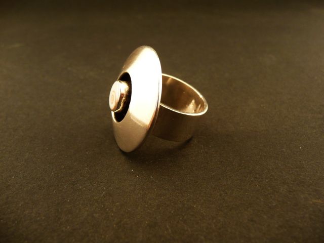 Ausmaße: Breite Ringschiene: 0,8 cm; Durchmesser Teller: 2,5 cm; Ringgröße: auf Wunsch