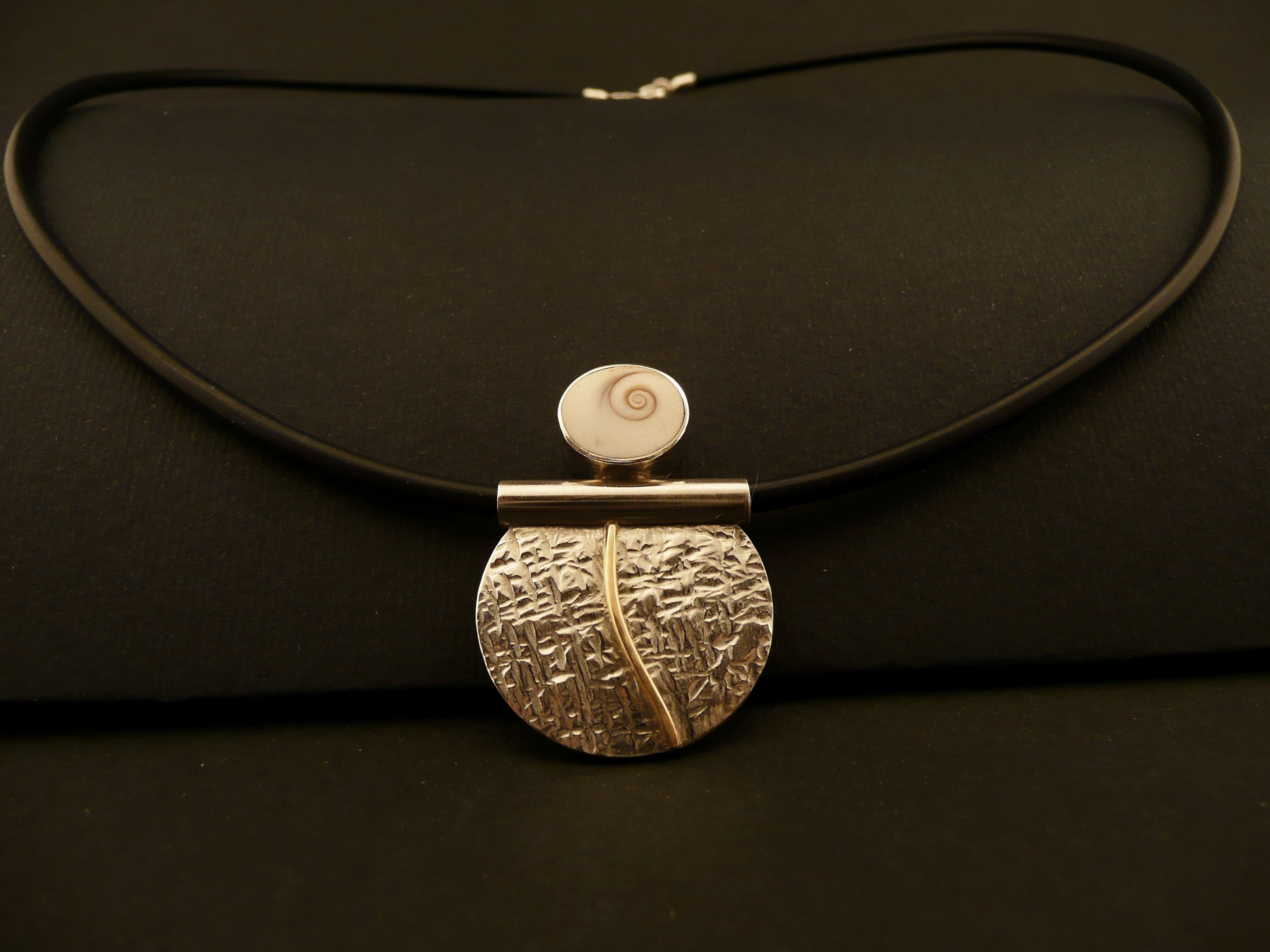Beschreibung: Meeresaugen-Anhänger am Kautschukband