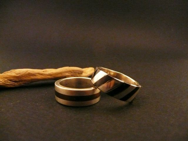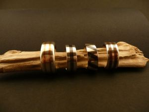 Beschreibung: Silberringe mit eingelegten Kupferstreifen