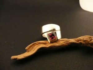 Material: Ringschiene: 925 Silber. Steinfassung: 750 Rotgold