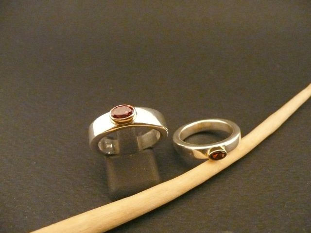 Bezeichnung: Silberring in zwei Größen: 0,6 cm breit und 0,4 cm breit. Lieferbar mit den Steinen: Amethyst, Rhodolith (rot), Peridot, Citrin, Blautopas