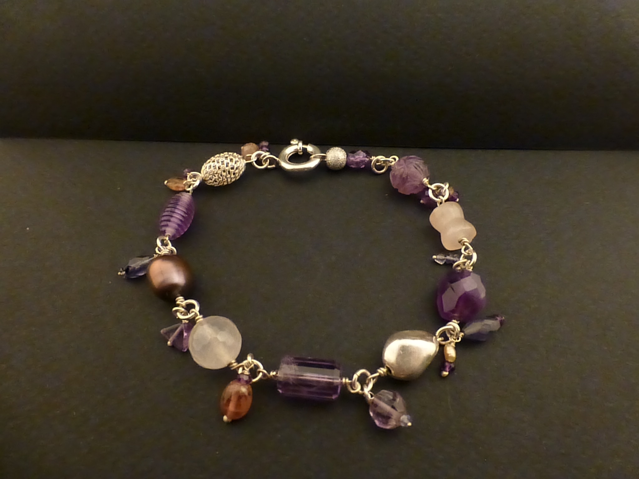Material: 925 Silber, Steine: Amethyst, Turmalin, Perle, Rosenquarz, Iolit
