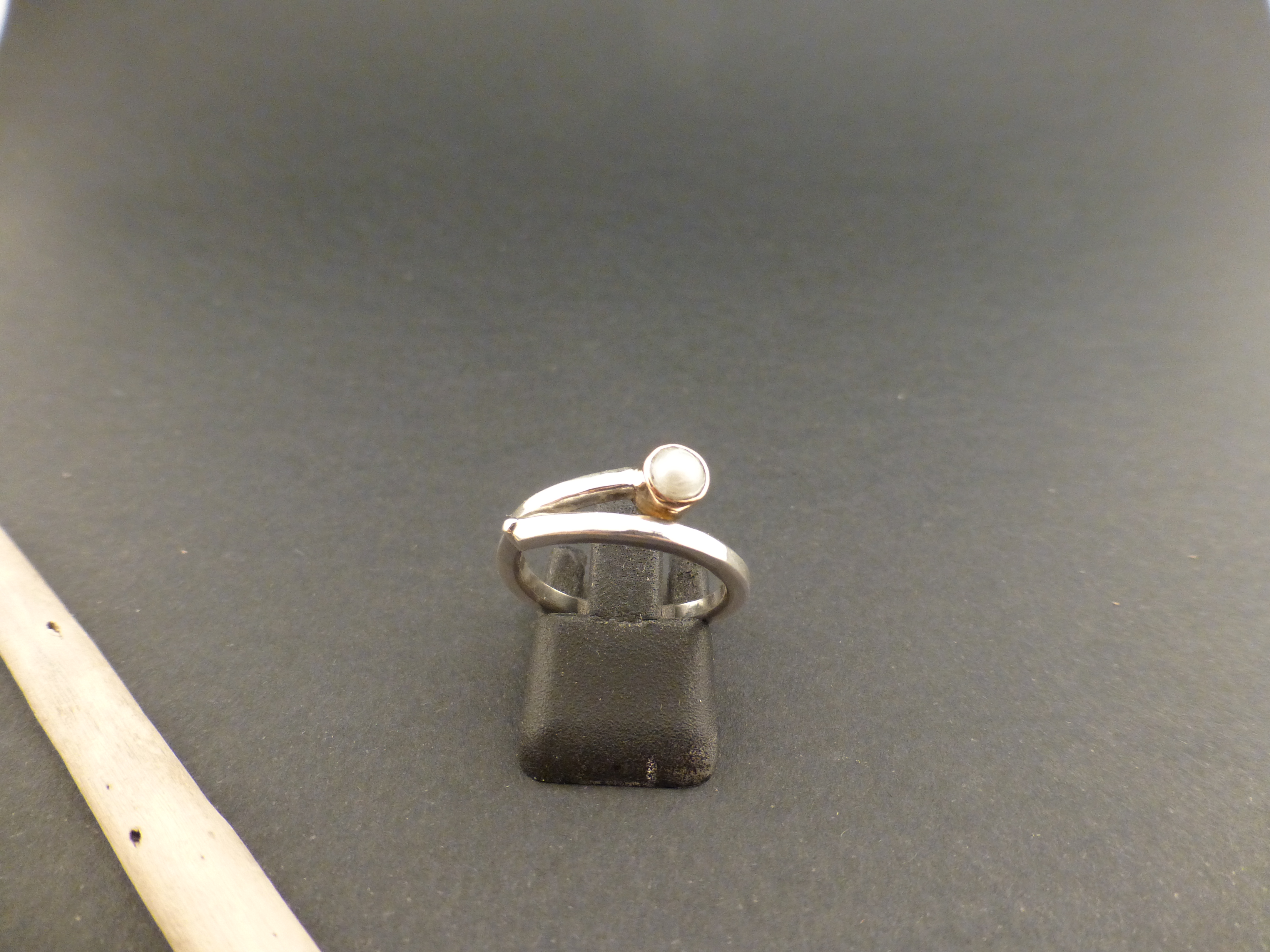 Bezeichnung: Feiner Silberring, mit einer in Gold gefassten Perle.
