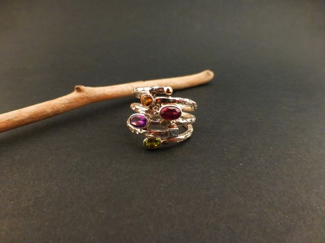 Material: 925 Silber / 585 Rotgold / Steine: Amethyst, Granat, Citrin, Topas, Peridot