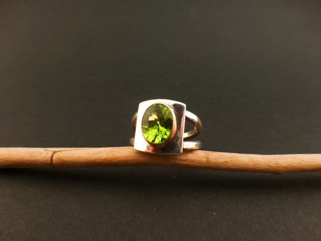 Bezeichnung: Silbering mit einen in Gold gefassten Peridot.