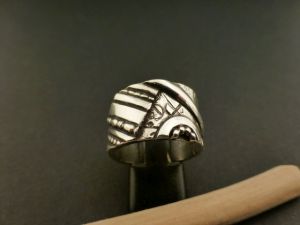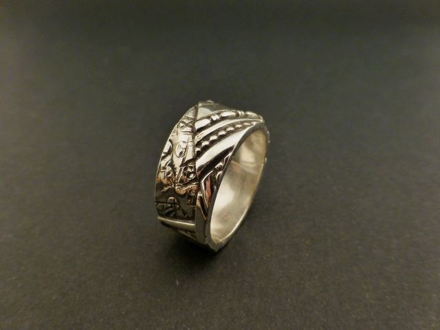 Bezeichnung: Breiter gehämmerter Silberring mit verschiedenen Profilen.
