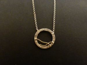 Bezeichnung: Feine Halskette,der Anhänger ist mit Golddraht verziert.
