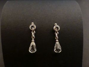 Bezeichnung: Silberohrstecker mit einen runden und einen tropfenförmigen Bergkristall.