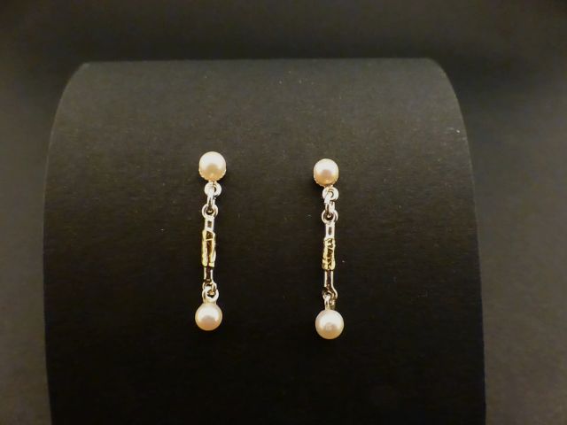 Bezeichnung: Silberohrstecker mit Perlen und einer Goldverzierung.