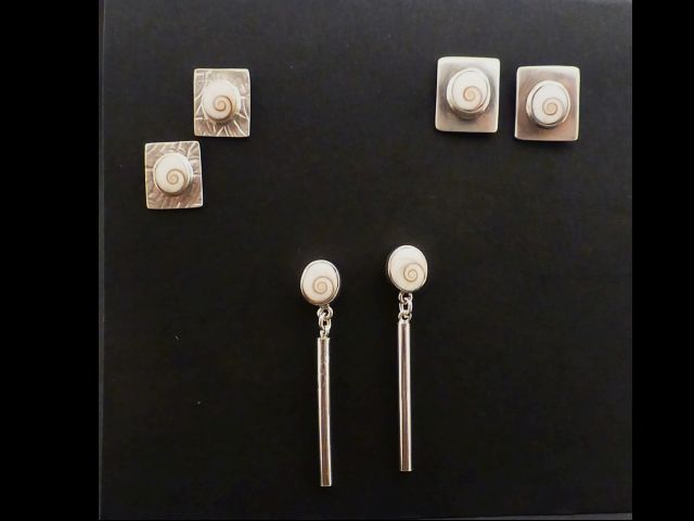 Größe : linkes Model : 1,2 x 1 cm, Silber ist gehämmert mittleres Model : Länge 4cm, Meeresauge : 0,8×0,7 cm