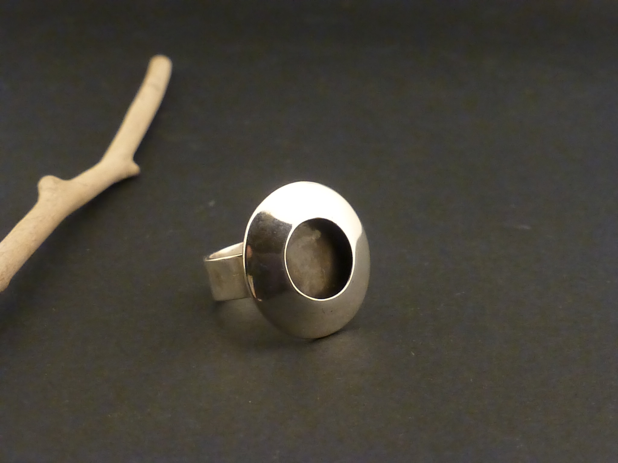 Bezeichnung : Silberring mit großem Teller , Innenseite geschwärzt