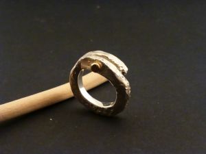 Bezeichnung: Grob gehämmerter ,massiver Silberring mit einer Goldverzierung.