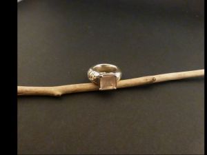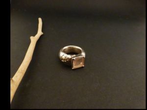 Bezeichnung: Massiver Silberring mit einem quadratischen Rosenquarz in Krampen gefasst.