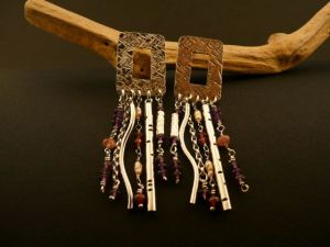 Bezeichnung : Ohrstecker aus Silberelementen, teilweise gehämmert.Die Elemente sind beweglich.
