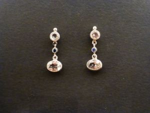 Bezeichnung: Silberohrstecker mit den Steinen, Blautopas, Amethyst, Granat und einer Goldverzierung.