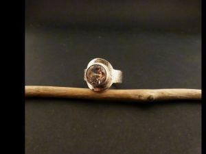 Bezeichnung: Silberring mit ziselierter Oberfläche und einem Berbkristall.